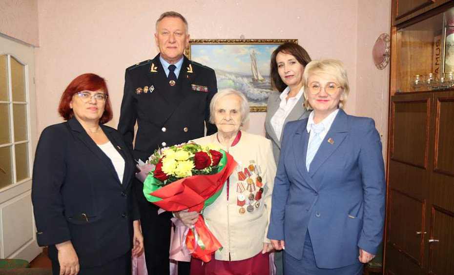 Прокурор Гродненской области Александр Жуков и глава администрации Октябрьского района г. Гродно Зоя Кулеша поздравили с 90-летием бывшую малолетнюю узницу концлагеря Лидию Филкову.