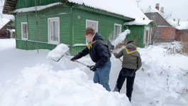 Работа спорится. Как юные спасатели Гродненской области помогают пенсионерам с уборкой снега